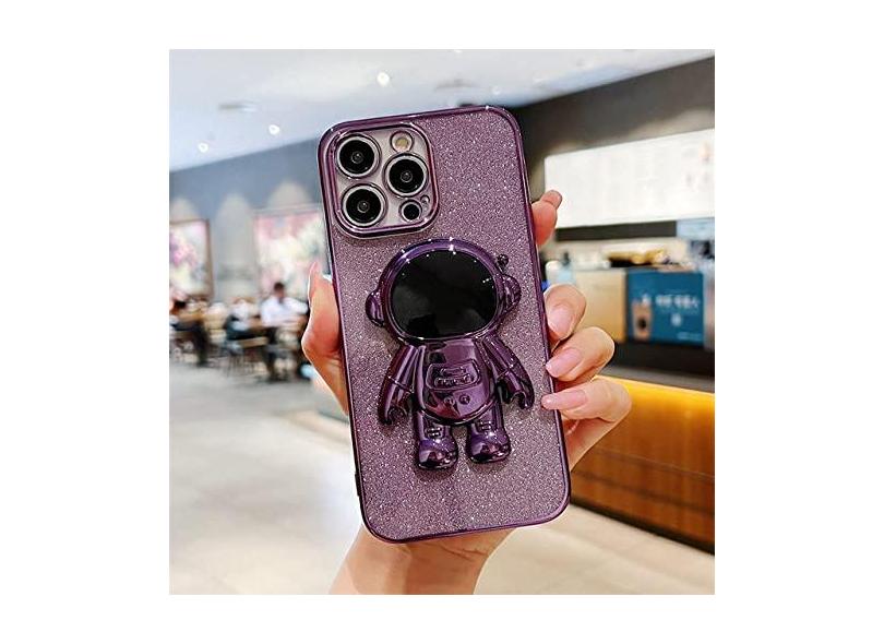 Capa Galvanizada Astronauta para iPhone 11 12 13 14 Pro Max XS Max X XR 14 Plus 13 Pro Capa Soft Glitter Kickstand, T7, para iPhone 11Pro Max