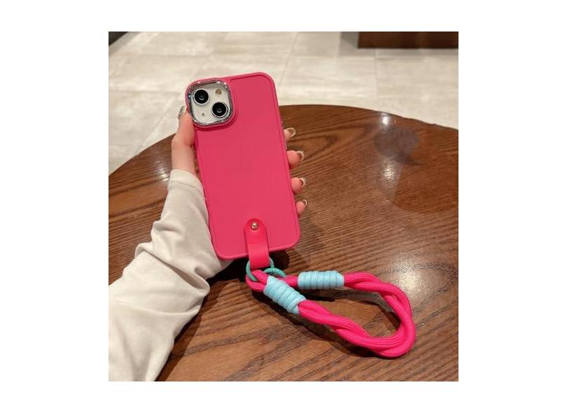 Capa luxuosa com alça de pulso revestida para iPhone 15 14 Pro Max 13 12 11 X Xr Xs 7 8 Plus SE 2 Capa de contraste de cor, rosa, para iPhone 12Pro