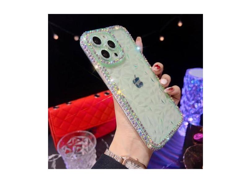 Capa luxuosa com brilho de diamante para iPhone 13 12 11 14 Pro Max X Xr Xs Max 8 7 Plus Capa transparente à prova de choque de silicone macio, verde, para iPhone X