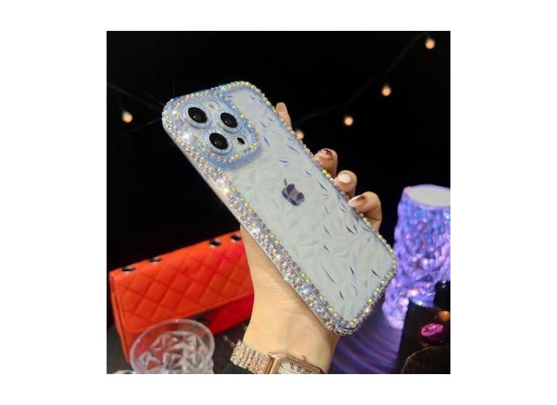 Capa luxuosa com brilho de diamante para iPhone 13 12 11 14 Pro Max X Xr Xs Max 8 7 Plus Capa transparente de silicone macio à prova de choque, azul, para iPhone 14Promax