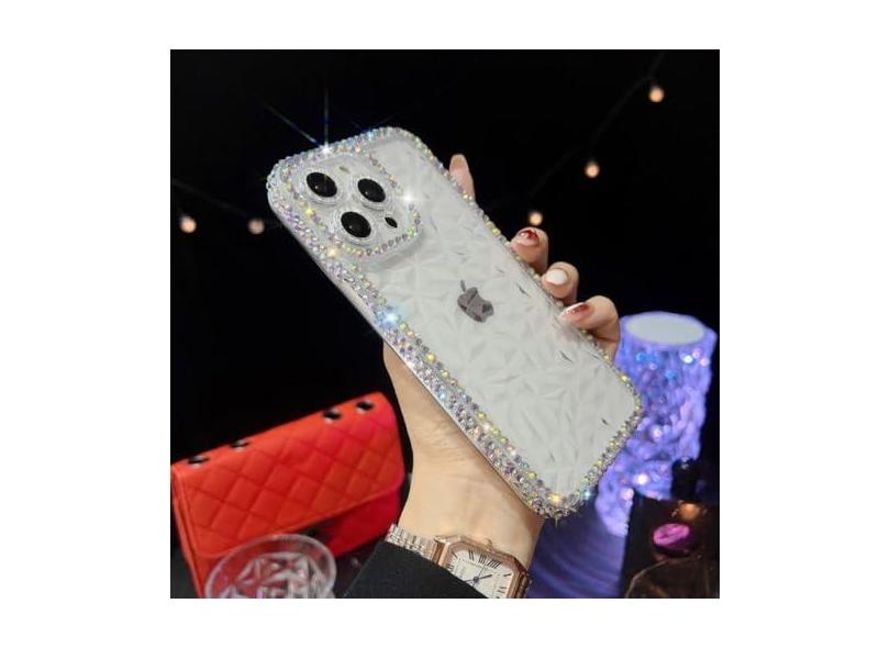 Capa luxuosa com brilho de diamante para iPhone 13 12 11 14 Pro Max X Xr Xs Max 8 7 Plus Capa transparente de silicone macio à prova de choque, transparente, para iPhone XS Max