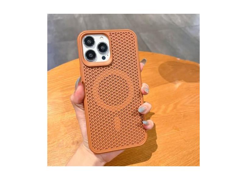 Capa luxuosa de dissipação de calor para iPhone 15 14 13 12 Pro Max Plus 11 Carregador sem fio respirável capa de cor sólida, marrom, para iPhone 15 Plus
