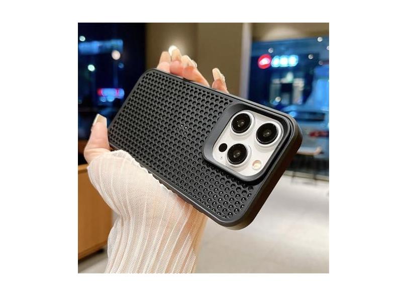 Capa luxuosa de malha respirável com dissipação de calor para iPhone 15 14 Plus 13 12 11 Pro Max, à prova de choque, capa traseira rígida, preta, para iPhone 13 pro