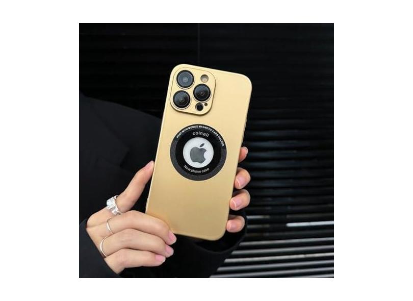Capa luxuosa de telefone de carga sem fio para iPhone 14 13 12 11 Pro Max Plus magnético pára-choques fosco rígido PC capa à prova de choque, ouro, para iPhone 14Plus