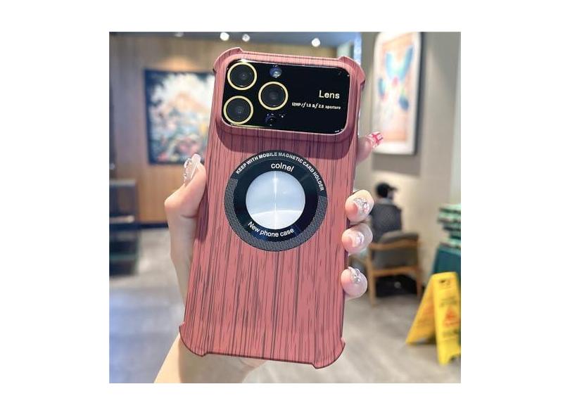 Capa luxuosa de textura de grão de madeira magnética para iPhone 11 12 13 14 Pro Max 14 Plus Capa à prova de choque de proteção de câmera, marrom vermelho, para iPhone 13 ProMax