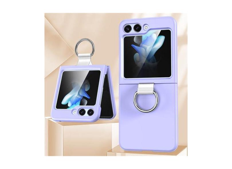 Capa luxuosa fina e fosca para PC para Samsung Z Flip 5 Capas com suporte de anel ultrafina à prova de choque para Samsung Galaxy Z Flip 3 4 5 5G, roxo claro, para Samsung Z Flip 4