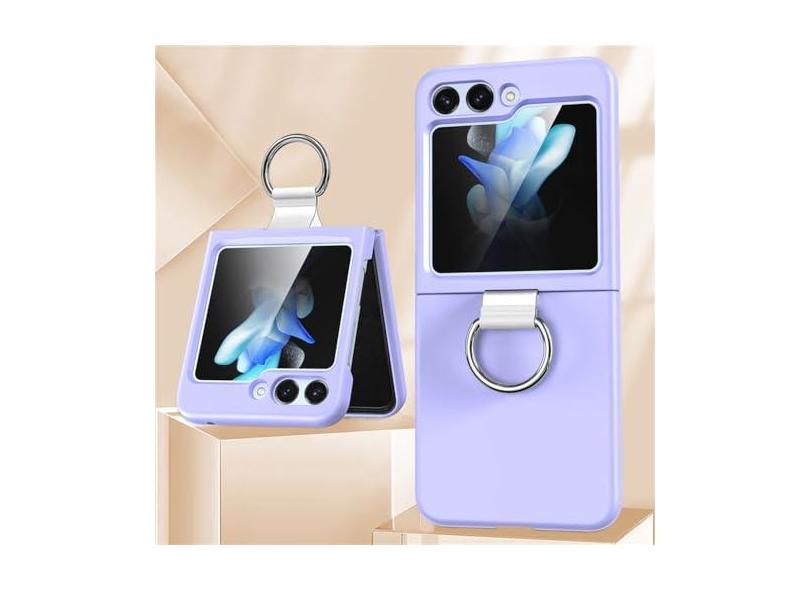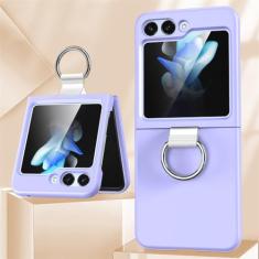 Capa luxuosa fina e fosca para PC para Samsung Z Flip 5 Capas com suporte de anel ultrafina à prova de choque para Samsung Galaxy Z Flip 3 4 5 5G, roxo claro, para Samsung Z Flip 5
