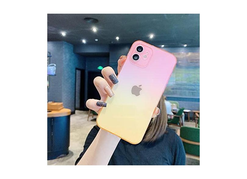 Capa macia de silicone gradiente para iphone 11 12 mini pro xs max x xr capa transparente ultra fina para iphone se 2020 7 8 6s 6 plus capa, rosa a amarelo, para iphone 6s plus