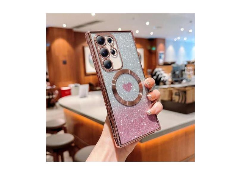 O menor preço encontrado no Brasil para Capa macia transparente galvanizada para Samsung Galaxy S21 S22 Plus S23 Ultra S23FE capa magnética com brilho sem fio, rosa, para Galaxy S21 Ultra atualmente é R$ 154,08.