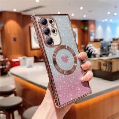 Capa macia transparente galvanizada para Samsung Galaxy S21 S22 Plus S23 Ultra S23FE capa magnética com brilho sem fio, rosa, para Galaxy S21 Ultra