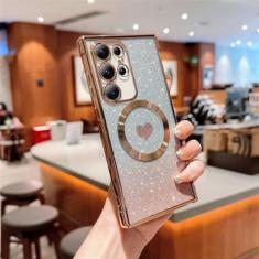 Capa macia transparente galvanizada para Samsung Galaxy S21 S22 Plus S23 Ultra S23FE com carregamento sem fio capa magnética com glitter, dourada, para Galaxy S21FE