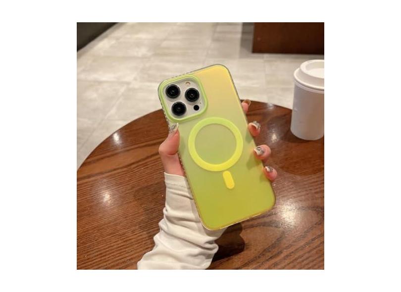 Capa magnética de carga sem fio luxuosa Gradient Laser Aurora para iPhone 14 Plus 13 12 Pro Max 11 Neon Color Cover, verde amarelo, para iPhone 14 Plus