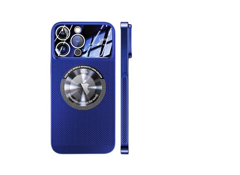 Capa magnética de dissipação de calor para iPhone 13 11 12 14 15 Pro Max lente de vidro de malha galvanizada ampliar capa de telefone, azul escuro, para iPhone 13 Pro