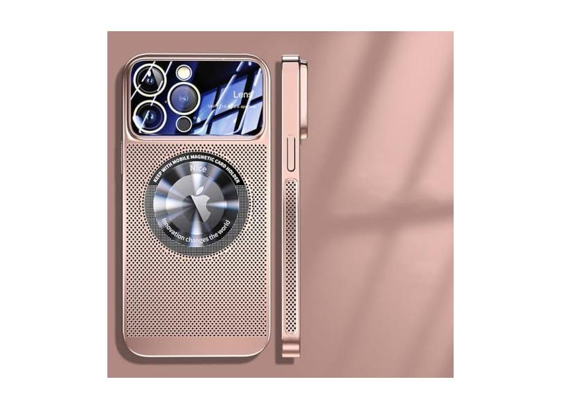 Capa magnética de dissipação de calor para iPhone 13 11 12 14 15 Pro Max Lente de vidro de malha galvanizada Ampliar capa de telefone, ouro rosa, para iPhone 12 ProMax