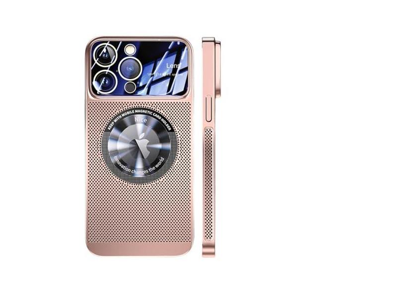 Capa magnética de dissipação de calor para iPhone 13 11 12 14 15 Pro Max Lente de vidro de malha galvanizada Ampliar capa de telefone, ouro rosa, para iPhone 14 ProMax