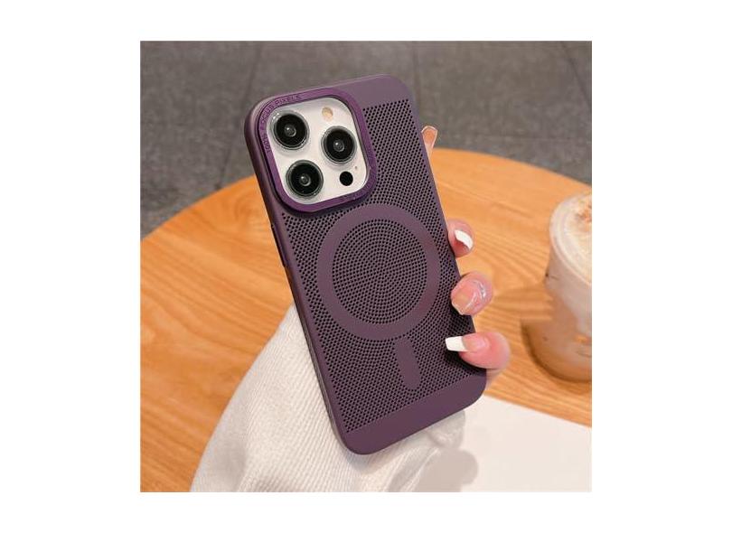 Capa magnética de grade de malha de dissipação de calor ultrafina para iPhone 15 13 12 14 11 Pro Max Matte Hard Steel Magsafing Cove, roxo escuro, para iPhone 14 Plus