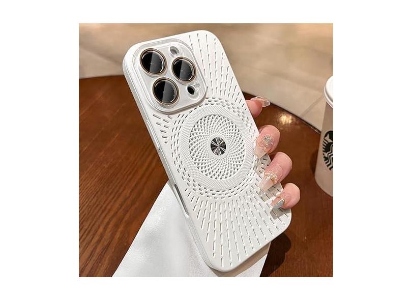 Capa magnética de malha com dissipação de calor para iPhone 16 15 14 13 12 Pro Max [compatível com MagSafe] Protetor de câmera magnética militar armadura fina à prova de choque (branca, para iPhone 13