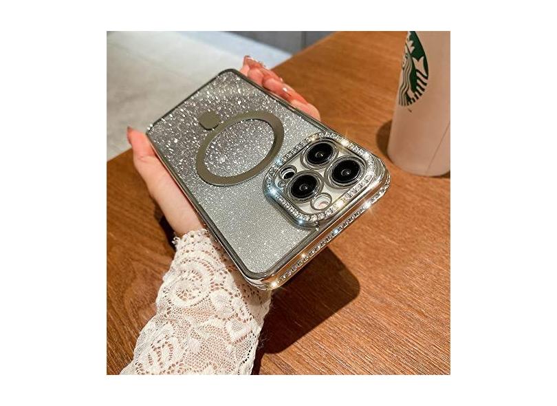 Capa magnética Gradient Glitter Diamond para iPhone 11 13 12 14 Pro Max 14 Plus Capa de carregamento sem fio transparente macia, prata, para iPhone 14 Plus