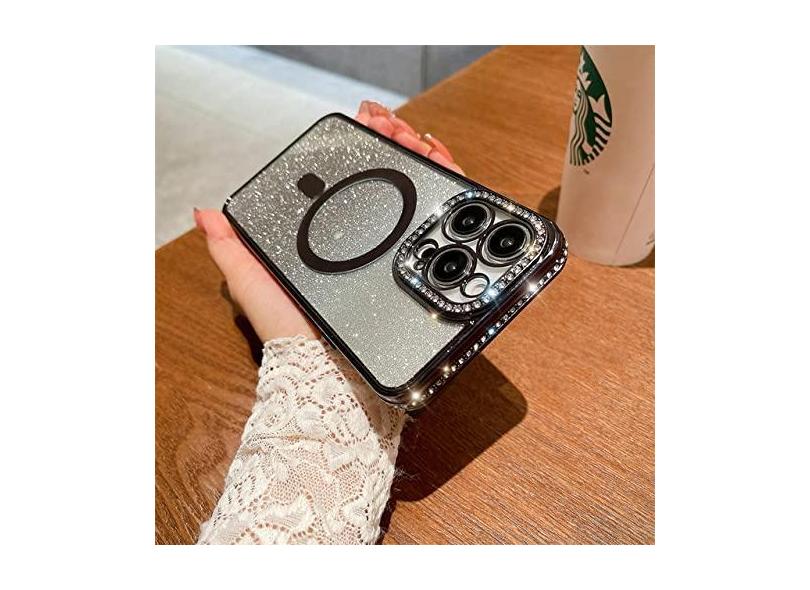 Capa magnética Gradient Glitter Diamond para iPhone 11 13 12 14 Pro Max 14 Plus Capa de carregamento sem fio transparente macia, preta, para iPhone 14