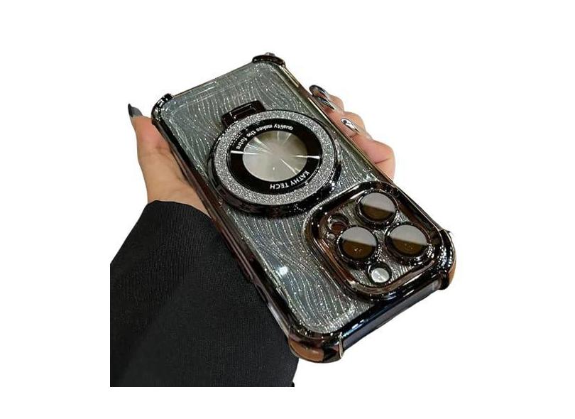 O menor preço encontrado no Brasil para Capa magnética para iPhone 16 Pro Max com glíter, estampa ondulada de água brilhante [compatível com Magsafe] fina com proteção contra quedas com protetor de lente de câmera, capa de telefone de luxo, atualmente é R$ 72,20.