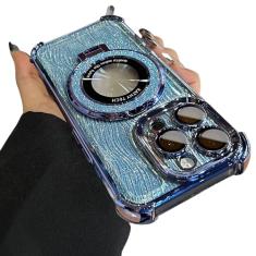Capa magnética para iPhone 16 Pro Max com glíter, estampa ondulada de água brilhante [compatível com Magsafe] fina com proteção contra quedas com protetor de lente de câmera, capa de telefone de luxo,
