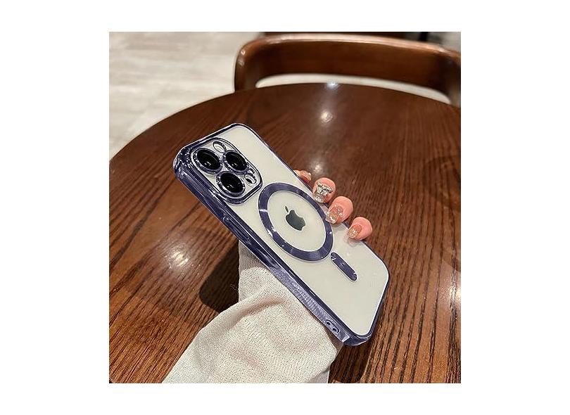 Capa magnética revestida de luxo para iPhone 13 12 11 14 Pro Max Capa de carregamento sem fio Capas de telefone transparentes à prova de choque, roxa, para iPhone 14 ProMax
