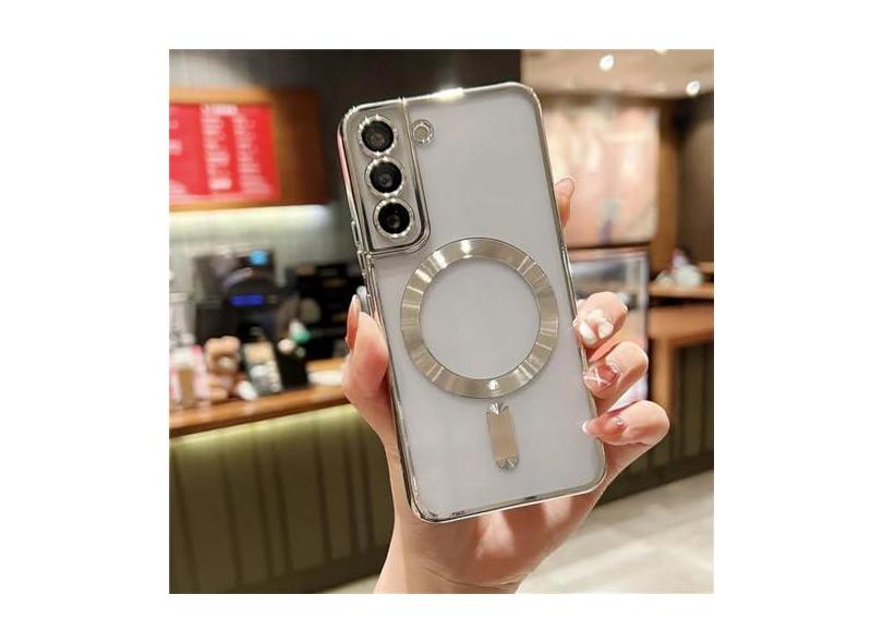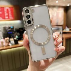 Capa magnética transparente revestida de proteção de câmera para Samsung Galaxy S24 S23 S22 S21 FE Ultra Plus Capa traseira de TPU macio, prata, para Samsung S24