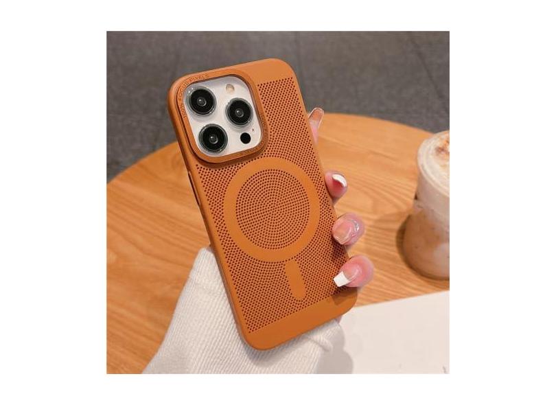 Capa magnética ultra fina de grade de malha de dissipação de calor para iPhone 15 13 12 14 11 Pro Max Matte Hard Steel Magsafing Cove, marrom, para iPhone 13
