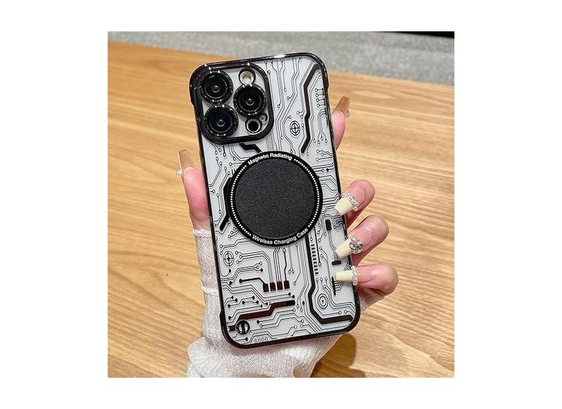 Capa magnética ultrafina com padrão de circuito sem moldura para iPhone 11 12 13 14 Pro Max 14Plus Capa transparente revestida de luxo, preta, para iPhone 13 Pro