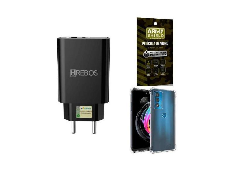 Capa Moto Edge 20 Pro + Fonte Carregador Turbo + Película 3D - Armyshi