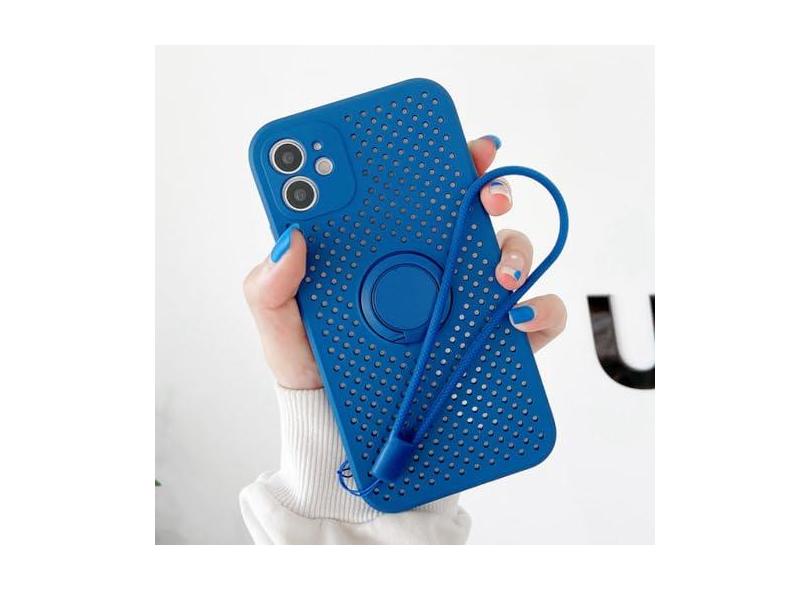 Capa oca de resfriamento respirável para iPhone 12 Mini 11 Pro XS Max X XR 7 8 Plus SE2 Capa de alça de suporte de anel magnético de silicone macio, azul marinho, para iphone 12 Pro