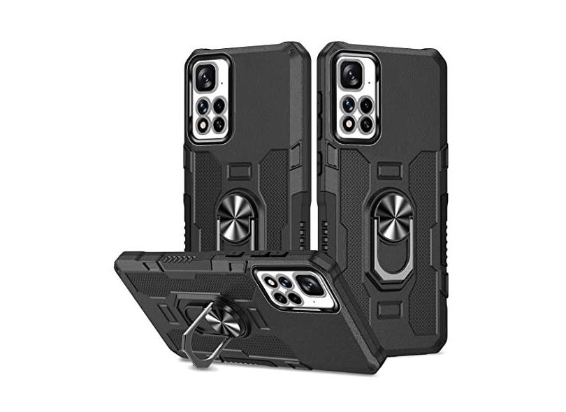 Capa para celular compatível com Xiaomi Redmi Note 11 Pro 4G/5G e protetor de tela de vidro temperado, suporte de anel, suporte magnético, metal, à prova de choque, Redme Note11 11E 11Pro, capa para
