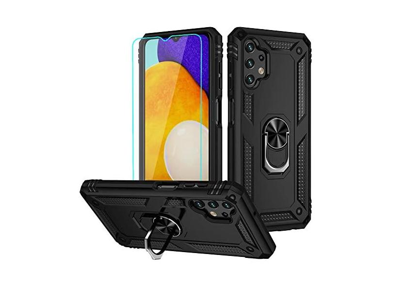 Capa para Galaxy A13 4G, capa para Samsung A13 4G com protetor de tela HD, suporte de anel de nível militar, suporte para carro, capa de telefone de 4,5 m testada contra quedas à prova de choque para