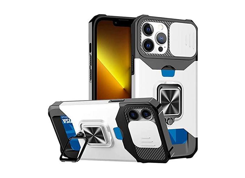 Capa para iPhone 14 13 12 11 Pro Max XS XR 8 7 Plus Slide Titular do cartão da câmera Slot Duty Carteira Protetora com capa de suporte de anel, prata, para iPhone XR