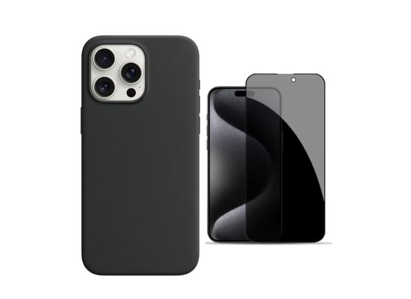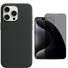 Capa Para iPhone 15 Pro Max Preto + Película Priv + Película Câmera