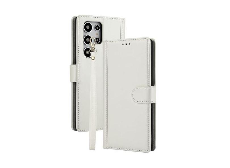 Capa para iPhone 16/16 Pro/16 Plus/16 Pro Max, capa carteira de couro PU com alça de pulso slot para cartão suporte à prova de choque, capa magnética, branca, 16plus 17.0 cm