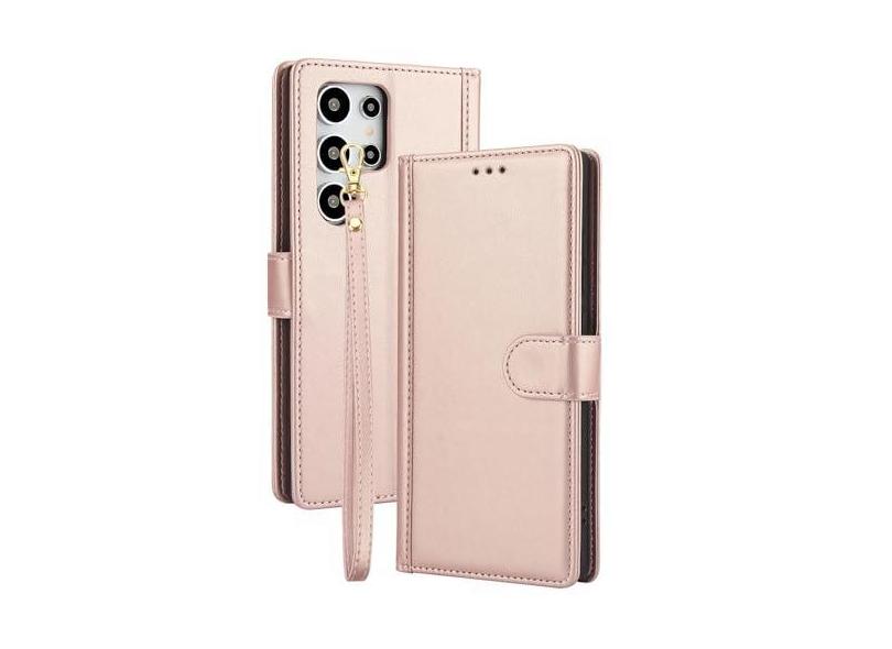 Capa para iPhone 16/16 Pro/16 Plus/16 Pro Max, capa carteira de couro PU com alça de pulso slot para cartão suporte à prova de choque, capa magnética, rosa, 16 15,5 cm