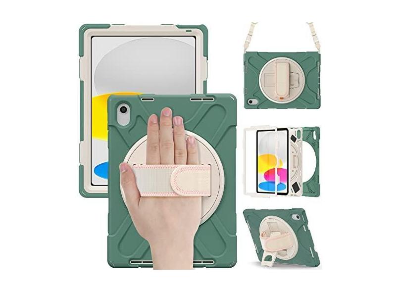 Capa para tablet Estojo de TPU resistente à prova de choque Compatível com iPad 10ª geração 10,9" Lançado em 2022, Capa protetora à prova de queda à prova de choque W Suporte giratório + alça + alça d