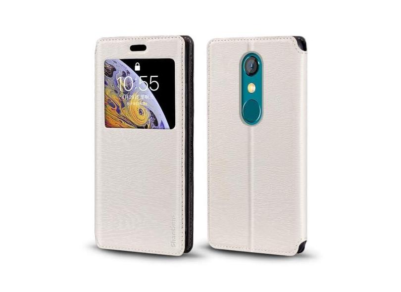 Capa para Unihertz Jelly Star, capa de couro de grão de madeira com porta-cartões e janela, capa flip magnética para Unihertz Jelly Star (7,6 cm)