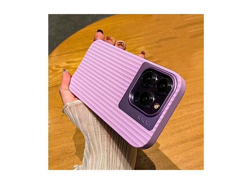 Capa protetora de lente de câmera de metal de alumínio listrado fashion para iPhone 14 Pro Max Plus ultrafina capa à prova de choque, roxa, para iPhone 14