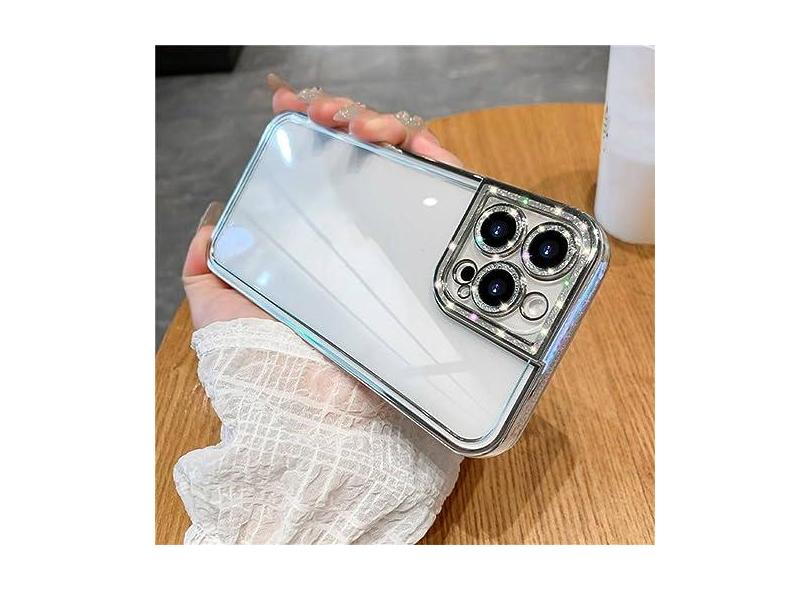 Capa protetora macia com strass e brilho de luxo para iPhone 14 13 12 11 Pro Max Mini XS X XR 7 8 Plus SE Plating Capa transparente de silicone, prata, para iPhone 14 Pro Max