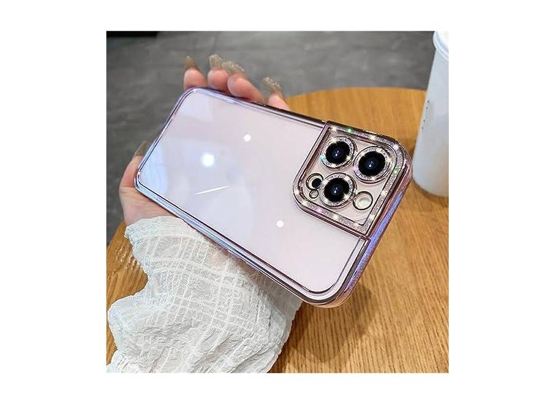 Capa protetora macia com strass e brilho de luxo para iPhone 14 13 12 11 Pro Max Mini XS X XR 7 8 Plus SE Plating Capa transparente de silicone, rosa, para iPhone 14 Pro Max