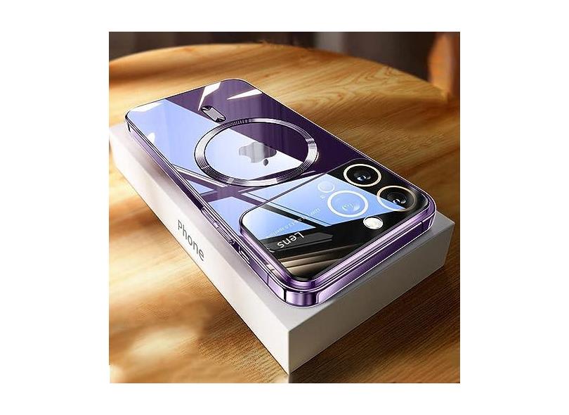 Capa protetora magnética de lente completa para iPhone 15 14 13 11 12 Pro Max 14 Plus Capa de carga sem fio transparente macia à prova de choque, roxa, para iPhone 14 Plus