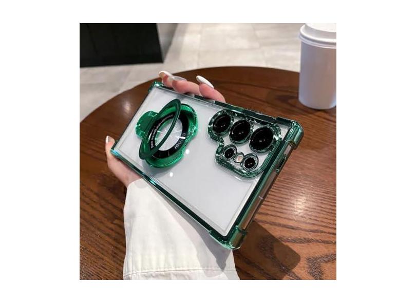 Capa protetora magnética transparente galvanizada para Samsung Galaxy S24 S23 S23 Ultra Stand Quatro cantos Almofada de ar anti-queda, verde escuro, S24