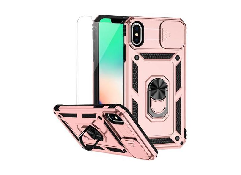 Capa protetora para iPhone XS Max com capa de lente de câmera HD, camada dupla de grau militar proteção contra quedas suporte magnético suporte suporte de telefone para iPhone XS Max 6,5 polegadas