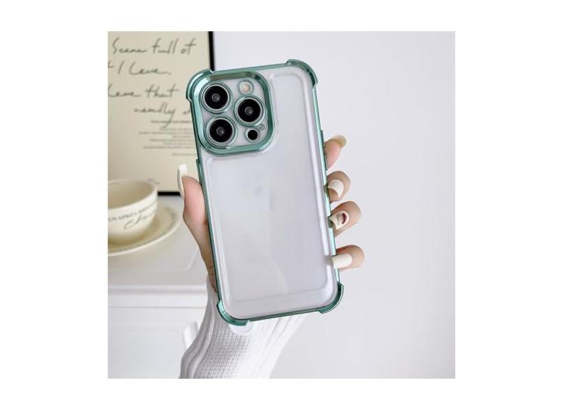 Capa protetora transparente à prova de choque revestida para iPhone 14 13 12 11 Pro Max 14 Plus Proteção de lente Airbag Canto Capa transparente macia, verde, para iPhone 14Pro Max