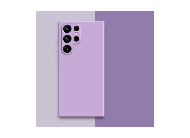 Capa quadrada de silicone líquido para Samsung Galaxy S23 Ultra S22 Plus S21 FE S20 Note 20 10 Capa protetora de tecido macio para telefone Back Cove, grama roxa, para Samsung S21
