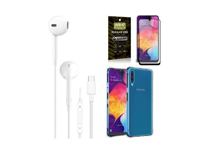 Capa Samsung A50 + Fone De Ouvido Tipo C + Película 3D - Armyshield