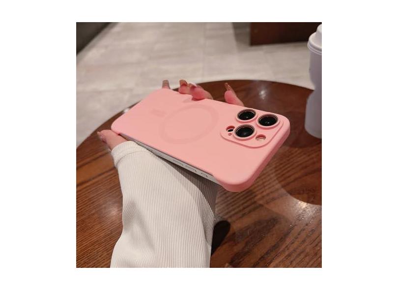 Capa sem moldura ultrafina para iPhone 15 Pro Max 14 Plus 13 12 Proteção de filme de lente de carregamento sem fio Capa dura para PC, rosa, para iPhone 12ProMax