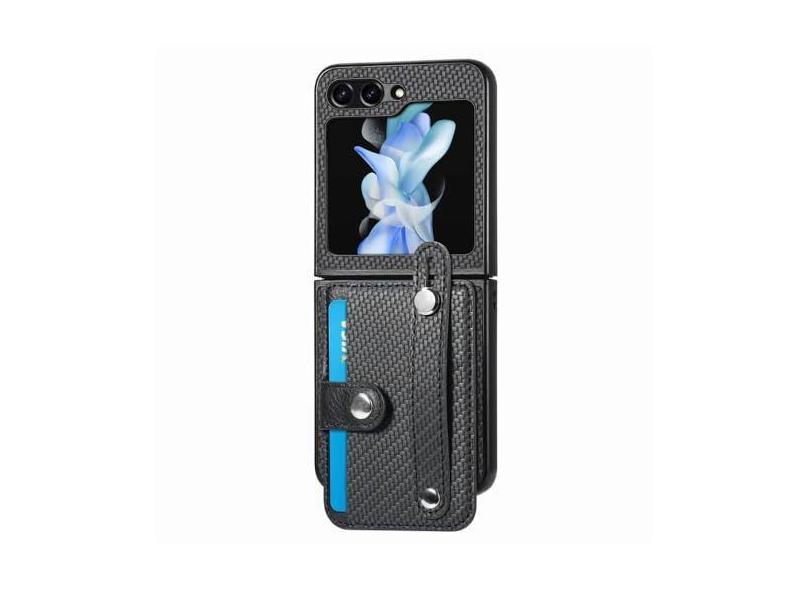 Capa tipo carteira com porta-cartões e amp; Pulseira de pulso para samsung galaxy z flip 6 5 4 3 2 flip6 flip5 flip4 flip3 flip2 5g capa de couro pu, preta, para galaxy z flip 6